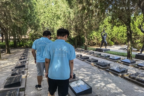 社会实践队成员来到散葬烈士墓区,深深感受到正是因为有你们的无私奉献,我们才能在今天过.上幸福的生活,感谢你们,革命烈士永垂不朽!