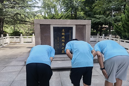 图为社会实践队成员向烈士纪念碑鞠躬刘易鑫摄