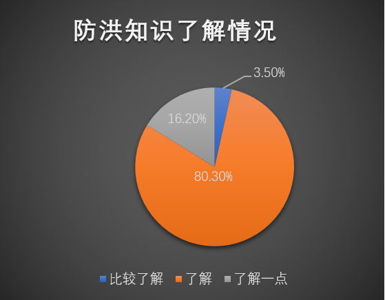 通过分析调查问卷,发现只有3.5%的小区居民掌握防洪抗灾的知识,80.3%的小区居民了解相应知识,剩下16.2%小区居民对其了解浅薄。准备工作结束后,实践团成员进行开会讨论,整理调查数据,对方案进行调整、完善。