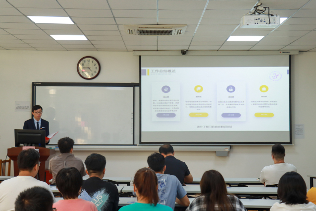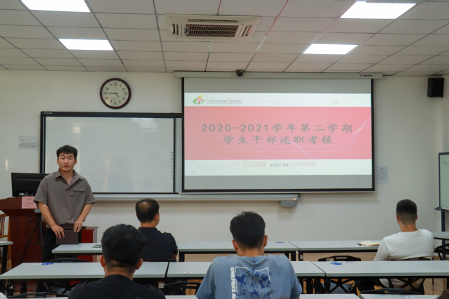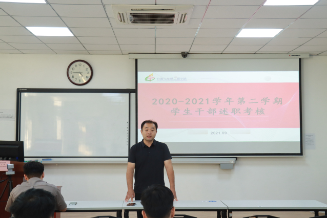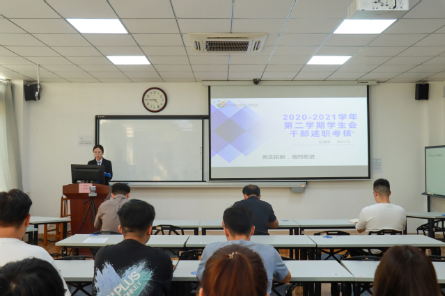 员工干部依次进行述职答辩,就自己所负责的部门进行述职,汇报上一学期工作的开展情况,展示工作进度,并总结工作上的不足,对未来工作进行规划。