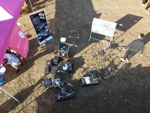 上午,社团工作人员将活动所需物品搬往95号展位,并现场组装、调试无人机。此次共有六台行业机在现场亮相,植保机、经纬M600RTK、经纬M300、经纬M200各一架,经纬M210两架。此外,社团部分飞手还携带私人航拍机进行拍摄。社团工作人员将社团海报、航拍地图进行展示,分发社团传单,认真耐心地向新生介绍创飞科技协会,并在展位举行抽奖活动,为活动参与者准备众多奖品。为保证活动有序进行,社团工作人员安排值班,明确各自任务,实现责任到人。