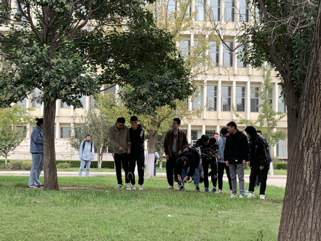 此次活动负责人没有按照宿舍分组,而是将全部同学打乱顺序自由分组,以增加每个小组成员之间的合作意识,促进同学间的交流沟通。活动过程中,各个小组同心同脚,都表现出势在必得的气势。不熟悉的同学通过活动熟悉起来,同学间从拘谨沉默变得无话不谈,比赛在欢声笑语中进行着。同学们在轻松愉悦的气氛中感受到了团队精神。