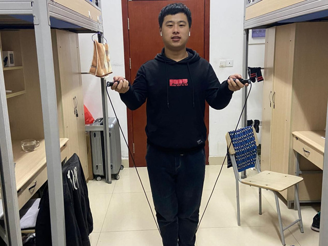 本次活动在平时的科研学习之余,组织同学们在宿舍强身健体。其形式不限,俯卧撑、平板支撑、仰卧起坐或者是利用简单的健身器材如哑铃,握力棒等进行锻炼。全班同学积极热情地投入其中,坚持锻炼,缓解学习紧张以及舒缓学习节奏,提高身体素质,增加抗“疫”能力。也有同学积极响应六个“一”的号召,自觉进行夜跑活动。