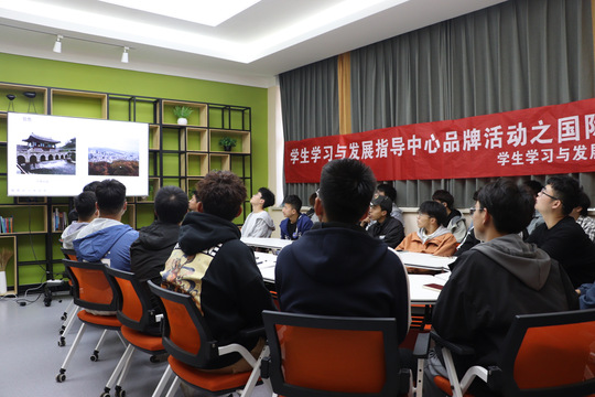 车辆工程1806班迟瑞东曾赴韩国成均馆大学进行海外交流,简单讲述了自己曾参加国家公派项目的经历。迟瑞东以ppt的形式展示了成均馆大学的美丽风景和校园周边,介绍了该大学的选课、学伴制度,向参讲人员分享海外交流的经验与感悟。