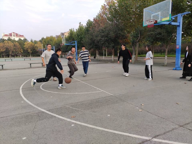 三体的篮球场上,同学们也进行着激烈角逐,分组进行比赛,个个全神贯注,带球、运球、投篮等各路球技展现的淋漓尽致,球员们发挥出了顽强拼搏的体育精神,加强了同学们团队合作的意识。
