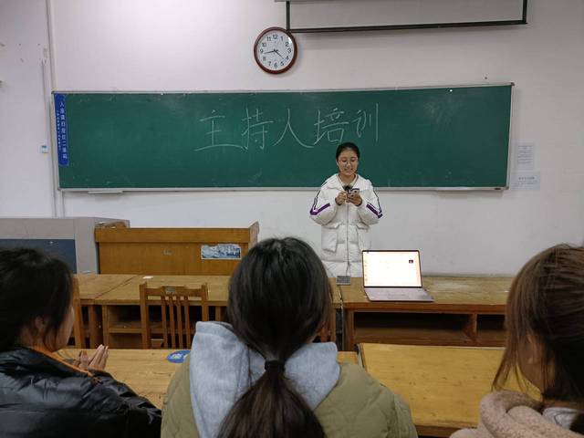 11月21日下午公司于12号教学楼212室开展主持人培训,此次培训由公司员工会素质拓展部黄倩主持。