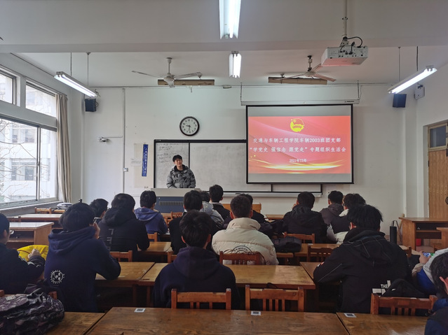 12月10日上午,车辆2003班团支部在12号教学楼210教室召开“学党史 强信念 跟党走”组织生活会并进行团员教育评议。会议由团支书牟冠宇主持,团员代表王晓飞,石梁毅,江新浙发言。
