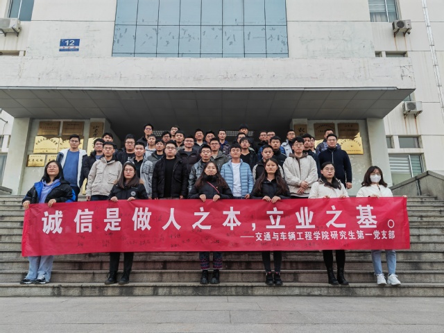 预备党员接收大会开始前,研究生第一党支部举行学术诚信签名活动,支部书记张凯通过列举实例强调了学术诚信的重要性,要求同志们在科研学习中一定要端正态度,杜绝抄袭论文、数据造假等学术不端行为。同志们依次在倡导学术诚信的标语横幅上签署自己的姓名,全体同志在教学楼前收据条幅合影留念。