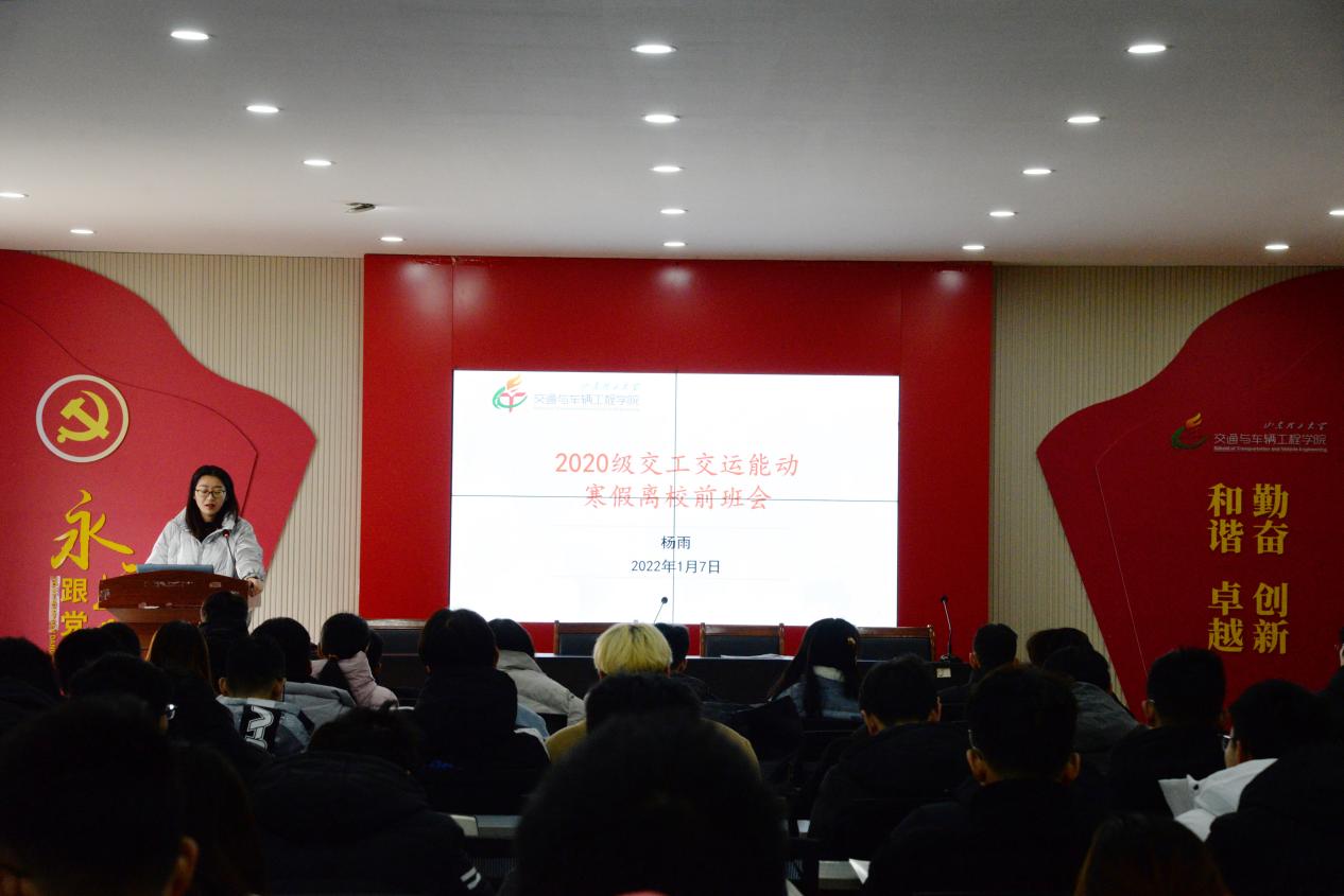 2022年1月7日下午,辅导员杨雨在12号教学楼217会议室召开2020级交工交运能动寒假离校前会议,2020级交通运输、交通工程、能源与动力工程专业全体员工参加。