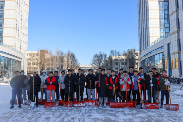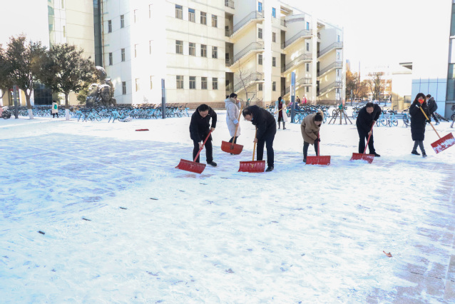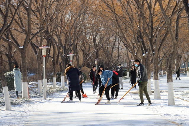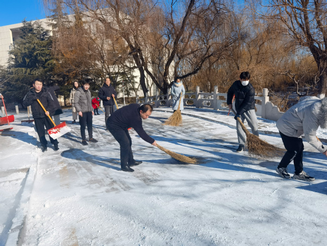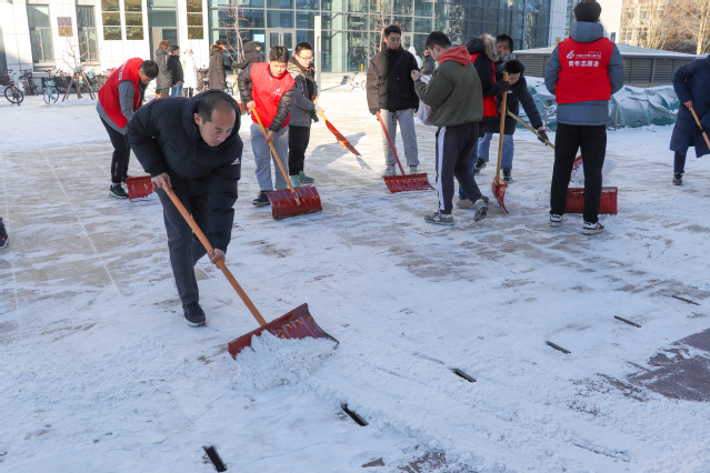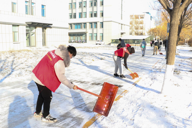 先锋在行动丨再现师生齐上阵,扫雪除冰保畅通!