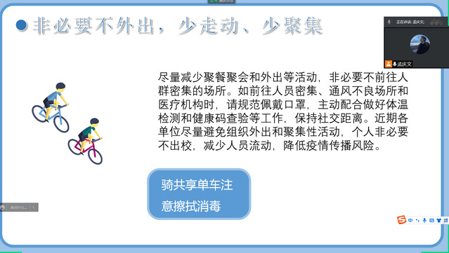 此次会议主要针对疫情防控工作和同学们的心理健康问题进行正确的引导,树立抗疫必胜的信心。以乐观向上的心态去面对疫情。