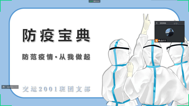 3月21日晚,根据bevictor伟德安排,交运2001班于线上开展“防范疫情,从我做起”主题班会。此次班会由团支书孟庆文主持,交运2001班全体同学参加。