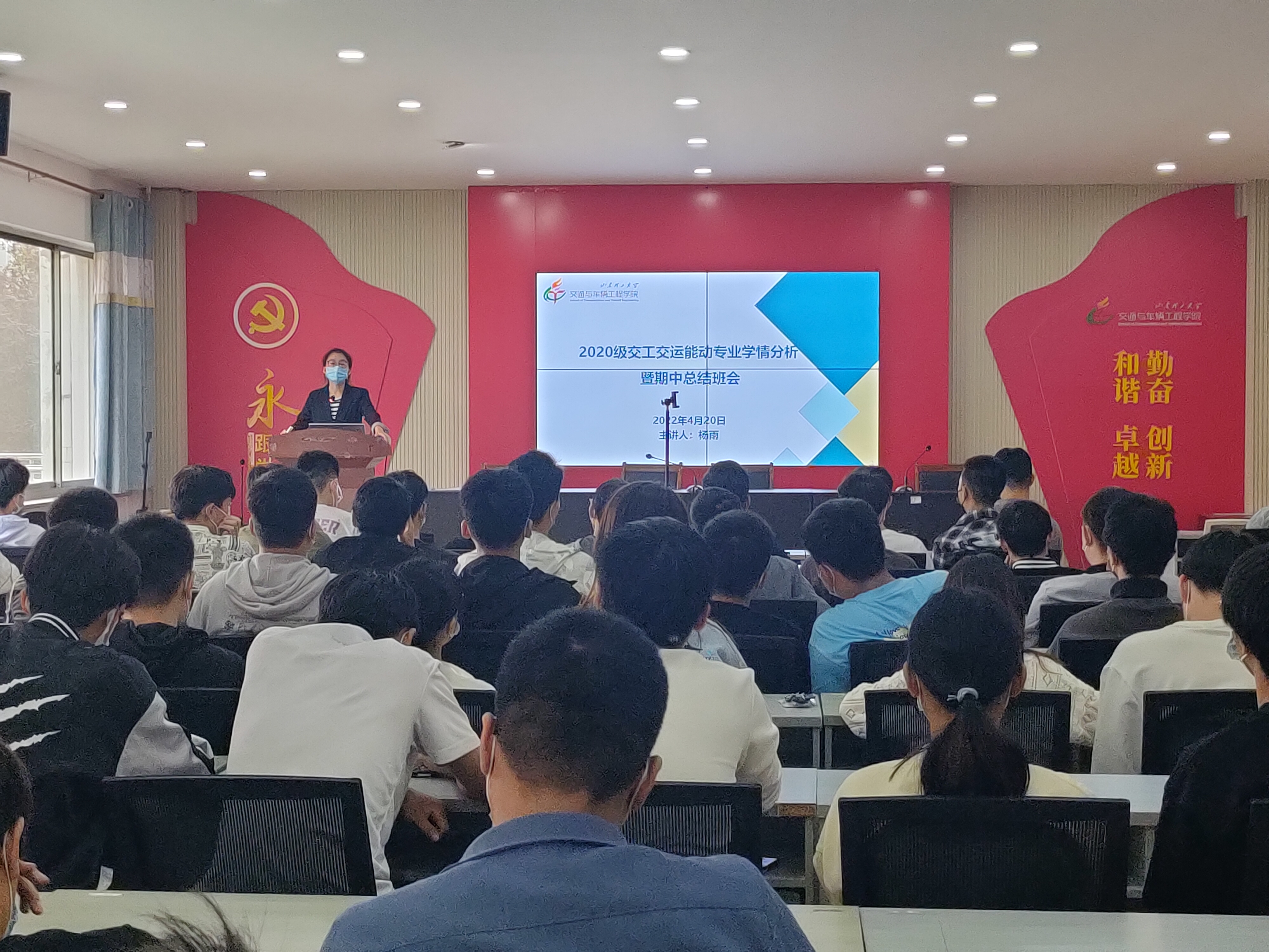 为进一步加强学风建设,营造抓班风、促学风的良好氛围,公司2020级交运、交工、能动三个专业于4月21日晚在12教217分批开展了学情分析暨期中总结班会,会议由辅导员杨雨主持。