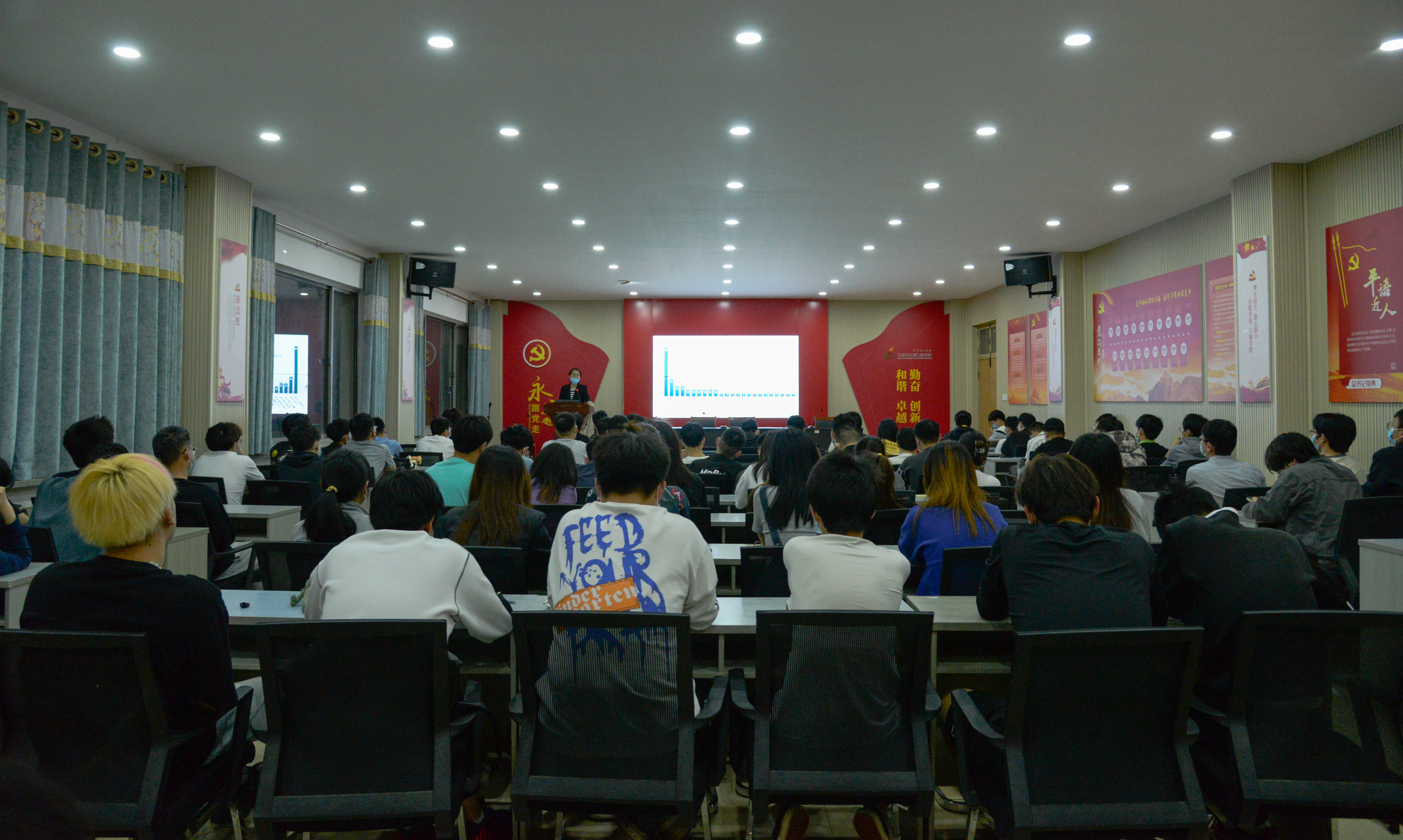 其次,通过分析各班的四级通过率,鼓励同学们提前做好未来考研或就业的打算,并分析2022届毕业生考研就业情况,从历年高校应届毕业生人数、考研优势、就业优势、近三年国家线对比等方面向同学们介绍考研、就业的相关内容,鼓励同学们根据自身情况早制定目标,要坚持奋斗,刻苦努力。