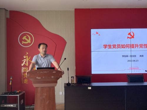 其次,高萌同志带领支部党员就员工党员如何提升党性修养展开学习,高萌同志强调第一点要不断提高自己的马克思主义理论水平,坚定理想信念,巩固信仰基石。找出支部党员自身存在的问题,及时整治,并告诉大家如何在实践中学习。高萌同志强调第二点要自觉学习先进文化、抵制腐朽思想侵蚀。要求支部党员学好专业知识,拓展专业视野,坚定专业报国之路。高萌同志强调第三点要率先垂范,严于律己,认真履行员工党员的责任和义务,要用自己的行动带动同学们共同前进,在关键时刻主动彰显和锤炼党性修养。