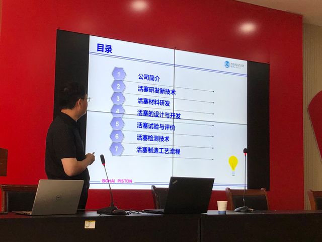活动开始,公司孟建老师对本次活动举办的目的和安排做了简要说明,对两位专家主任的到来表示热烈欢迎。石小明报告中,介绍了渤海活塞有限公司关于我们及简介,然后介绍了针对现如今科研前端的活塞新技术,活塞材料的研发,活塞的设计与开发,活塞的实验与评价,活塞检测技术,活塞制造工艺流程等,最后介绍了该专业美好前景,并寄语同学们美好的祝福与希望;熊培友报告中,讲解了关于内燃机关键零部件开发与生产过程,从活塞构造到软件模拟再到试验分析生产加工进行了全方面解析,让同学们不仅了解到了许多课本外有关知识,还接触了该方向最前沿的研究现状,在讲座的最后,熊培友老师寄语同学们:“没有夕阳的产业,只有夕阳的思维,鼓励大家认真学习科学文化知识,早日投身到建设祖国的第一线中。”