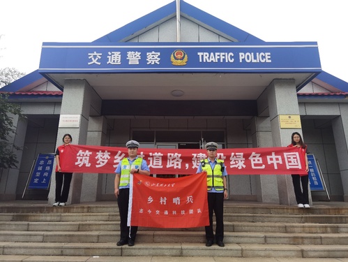 临行前,实践团成员与桓台果里中队在交通中队门前合影留念,对刘队长的理论讲解和实践指导表示感谢。同时,刘队长对实践队员心系交通表示感激与欣慰。