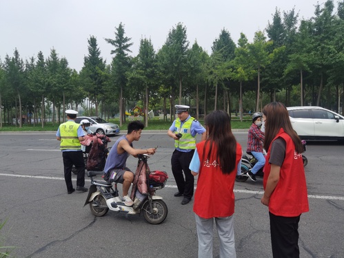 在受到指导后,实践团成员与中队长陈振国一起在临淄大道安装上了交通信号灯并针对现有的交通安全问题,本团队预向周边社区居民展开调研,以淄博市城区道路干道安全隐患为调研主题,通过面对面访谈、发放问卷等方式收集信息。综合分析后,以此得出整治淄博市机动车干道安全的方法。就淄博市道路安全建设发展发展、逐步加重道路安全监管以来,更新道路检测设备以来当地居民出行情况及民众日常生活变化等多方面状况进行询问。实践团此次采访张店区政要人员,旨在进一步了解当地道路基建建设以及相关检测设备安装、设备使用状况,调研其重要性及对人民生活的影响力,为后期社会实践进程提供理论支撑。