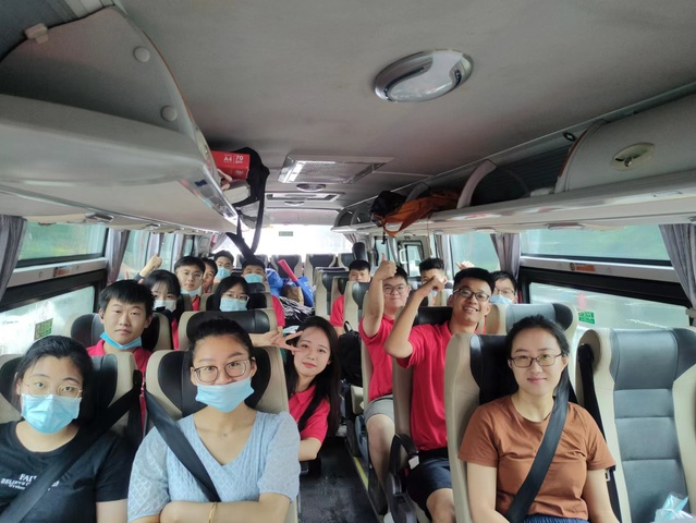 7月6日,实践团的所有成员在9号宿舍楼前集合完毕并且整理好相关的行李。20名实践团的同学将行李搬运至大巴车上就此展开为期14天的支教实践活动。