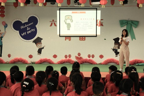 活动主要分为聆听英雄故事、认识英雄人物、学唱红色歌曲三个部分组成。活动伊始,主讲人李晓龙首先通过播放“那年那兔那些事”中抗美援朝的动画片段的趣味方式,讲解抗美援朝故事,活跃课堂气氛,吸引小朋友学习兴趣。随后,张雪娇通过PPT展示的方式用通俗易懂语言的为小朋友简要解释动画片中抗美援朝等专有名词的意义,并讲述了抗美援朝英雄黄继光的英雄事迹,帮助小朋友更加深入的了解抗美援朝的意义,感受爱国主义情怀。
