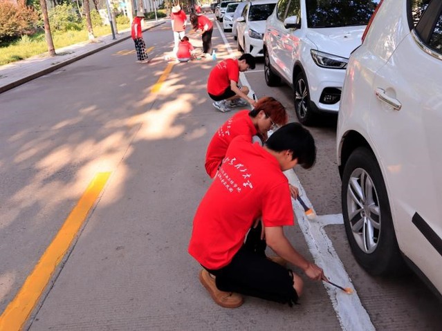 签约授牌仪式结束,在双方仔细沟通协商过后,实践团成员开始按照计划开始实地社区志愿服务活动,包括重新描画被破坏或损坏的消防安全标识,如安全通道标识、楼道内消防安全标识等标识;与居委会相关人员一起对于存在消防安全隐患的行为或现象进行整改,如楼内杂物堆积、消防通道占用、电线老化、飞线乱拉线等行为,并对于存在消防安全隐患现象的业主,实践团与居委会对其进行消防安全知识科普,指出问题的重要性以及可能引起的后果。做到防范于未然,筑牢社区居民生命财产安全防线。