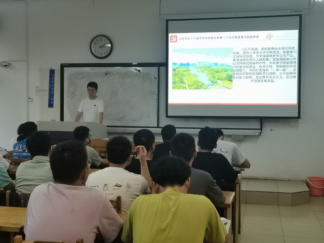 会议伊始,邵政同志领学了习近平总书记在第十九届中央政治局第二十九次集体学习会议的讲话。习近平强调,要积极推动全球可持续发展,秉持人类命运共同体理念,积极参与全球环境治理,为全球提供更多公共产品,展现我国负责任大国形象。要加强南南合作以及同周边国家的合作,为发展中国家提供力所能及的资金、技术支持,帮助提高环境自理能力,坚定维护多边主义,坚决维护我国发展利益。