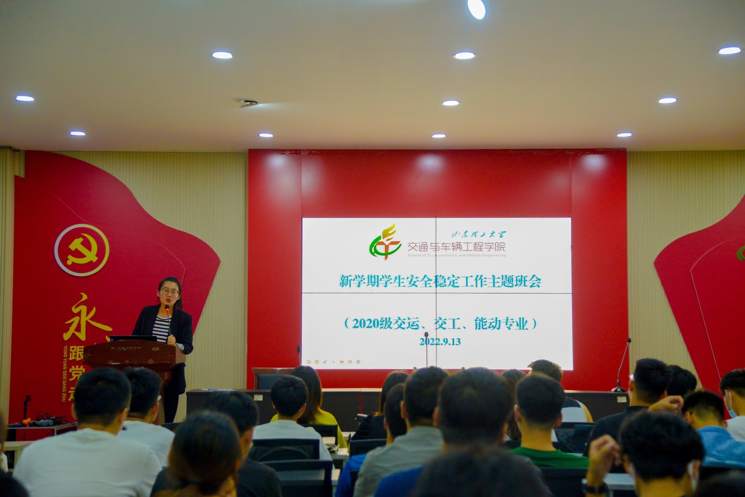 为迎接党的二十大召开,9月13日晚,2020级交运、交工、能动专业在12号教学楼217会议室召开“喜迎二十大,永远跟党走”主题班会,会议由辅导员杨雨主持,2020级交通运输、交通工程、能源与动力工程专业全体员工参加。