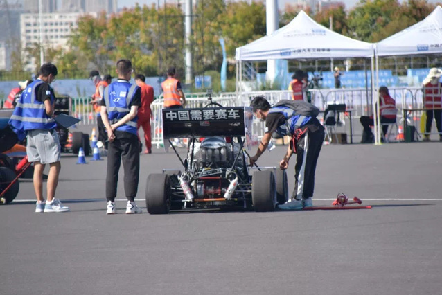 上午九时,至尚方程式赛车队的队员们推车前往车检区,顺利通过了前日由于主办方设备故障而未完成的侧倾检测,至此,赛车通过了所有的车检项目,正式开启动态赛的赛程。