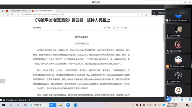 2022年10月27日,公司员工第二党支部于腾讯会议线上开展第十周双周理论学习活动。会议由党支部书记范晶晶主持,支部全体党员参加。