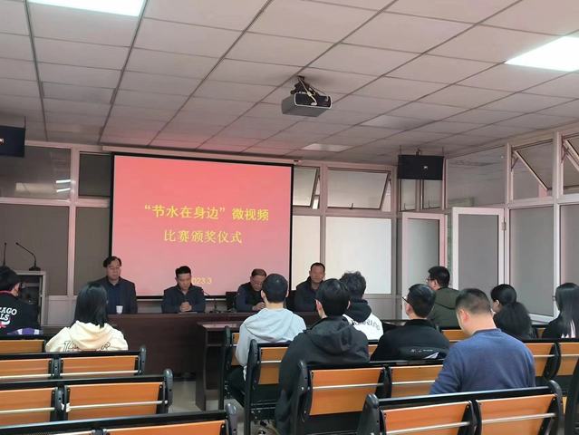 “水是生命之源,是人类生存的依赖,同时节约用水是实施可持续发展战略的重要措施,更是全社会的责任。举办此次比赛是为了将‘节水在身边’这种意识贯彻落实,宣传呼吁人们从自己做起,从身边做起,将这种优秀行为传播下去,通过“微视频”途径也可以让更多的人关注到这个问题。同时通过网络平台点击量与评委打分两个方面来确定作品排名。”后勤管理处副处长高坤说道。随后选取部分优秀作品现场播放进行观摩学习。