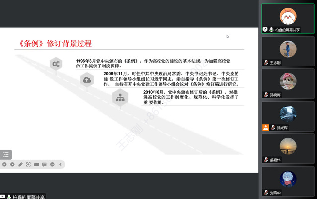 12月8日,研究生第二党支部在腾讯会议进行政治理论学习,本次会议由孙光辉同志主持,支部全体党员参加。