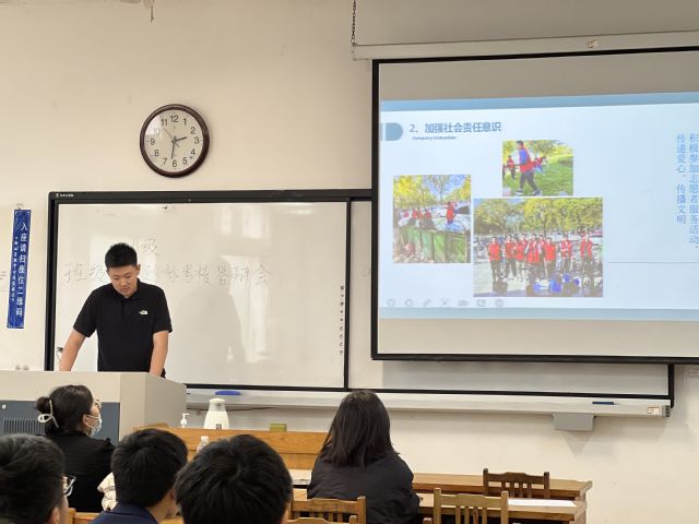 为全面总结上一学期班级建设成果,更好地开展新学期班级建设工作,5月4日下午,公司在12号教学楼分年级举行2022-2023学年第一学期班级建设达标考核答辩会,公司团委书记高萌、员工工作办公室全体辅导员在各年级答辩会场担任评委,公司本科年级部分班委参加答辩会。