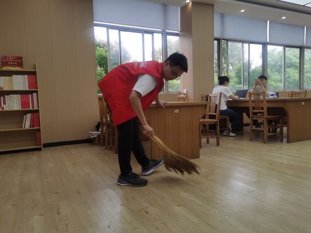 5月18日下午,支部党员在12号教学楼南侧进行单车摆放志愿服务活动,通过将停放的单车进行整齐摆放和打扫教学楼南大厅,使得12号教学楼环境井然有序,为优化校园育人环境贡献力量。