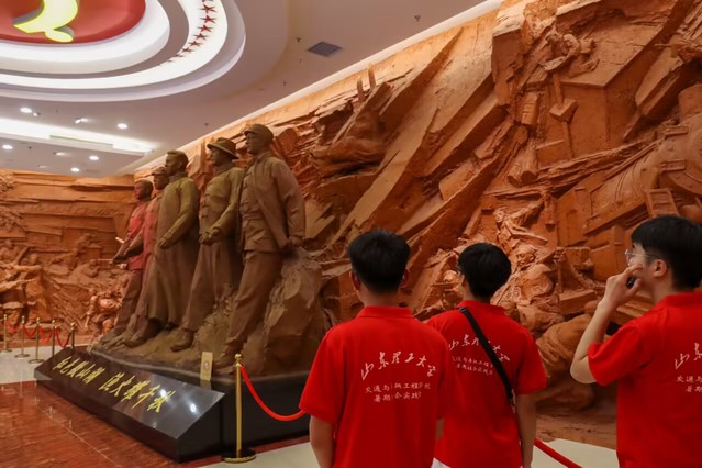 接着,实践团成员正式进入铁道游击队纪念馆。一进门,铁道游击队先烈们的塑像就矗立眼前,他们的塑像栩栩如生,那英勇豪迈,坚定不移的英姿震撼了在场所有人。实践团成员游览学习了有关于铁道游击队的历史事迹和精神。馆场内,实践团看到了革命先烈们冒着敌人们的炮火共赴国难,千万爱国将士浴血奋战,视死如归。各界人民万众一心,同仇敌忾,用生命和鲜血谱写的一首感天动地的反抗外来侵略的壮丽史诗。这让实践团成员对红色精神有了更深刻的领悟。铁道游击队的精神对现代青年具有深远影响,他们的爱国主义精神鼓励青年为了祖国繁荣富强而奋斗;他们的团队协作精神鼓励青年面对挑战,齐心协力;他们的创新精神鼓励青年在学习和工作中勇于探索,敢于创新;他们的艰苦奋斗鼓励青年在绝境中保持积极向上的态度。