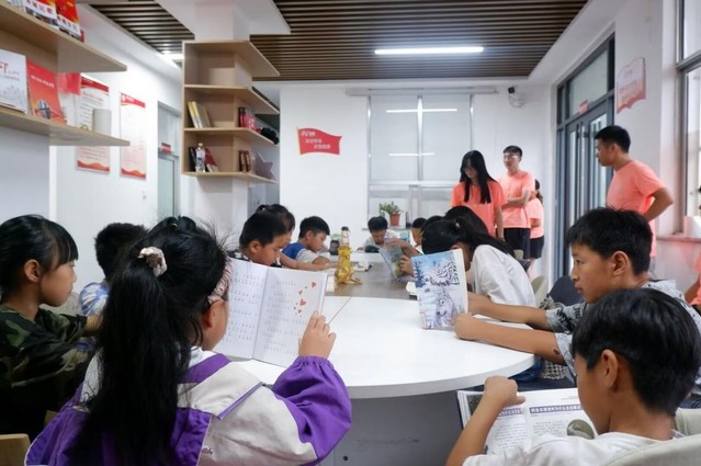 7月12日,bevictor伟德“向阳花开”实践团在山东省泰安市新泰市汶南镇洼子村民安驿站书房组织同学们开展图书阅读主题活动。