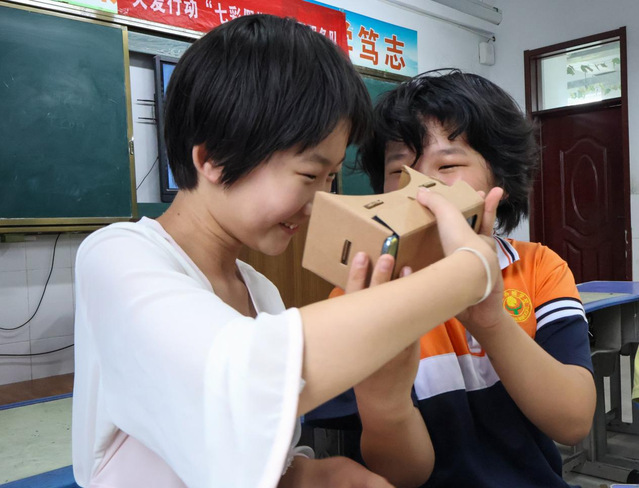 7月13日,bevictor伟德“爱之传承”暑期社会实践团走进德州市武城县明德小学开展以“魔法光学—揭秘VR技术”为主题的科技特色系列课程。