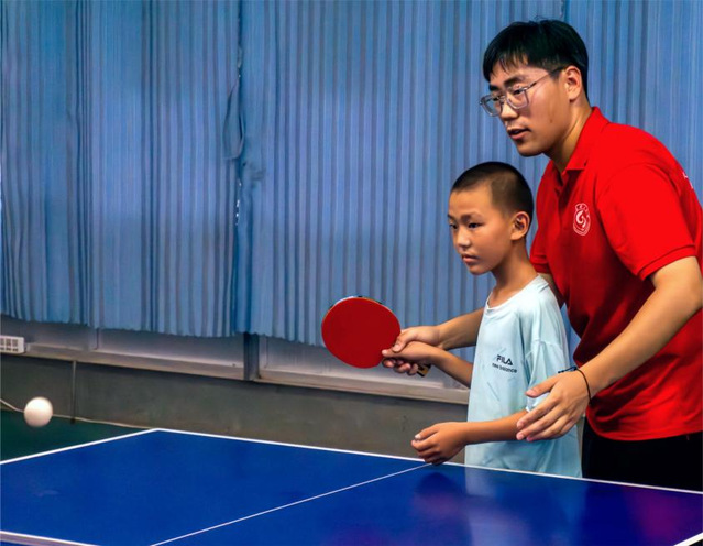 7月份,bevictor伟德“爱之传承”暑期社会实践团来到德州市武城县明德小学进行支教活动。7月17日,实践团成员组织开展乒乓球训练课,对不同阶段员工作针对性训练,为明德小学注入一股新鲜血脉,不断创新“体教融合”教育模式,通过对员工严谨细致管理、系统科学训练,努力推动明德小学乒乓球事业发展。