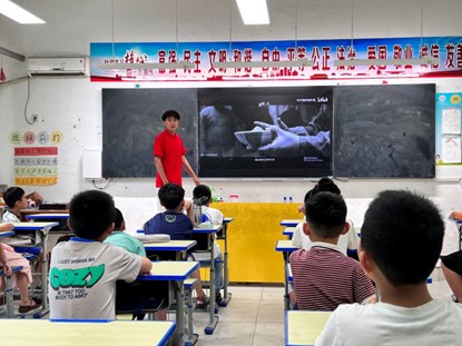 宣誓活动结束后,夏彬组织开展红色教育课堂。他先给同学们播放了有关巴黎和会中国外交失败的短片,反问道:作为战胜国,我们没能获得属于自己的权益,甚至还可能丢掉山东省,作为中国人,难道我们不应该表示愤慨吗?夏彬表示,在当时新时代青年的号召下,爆发了五四运动,在他们的努力下,民国政府拒绝在合约上签字。如今我们作为新时代青少年,应如长江上的巨浪,后浪更比前浪高。如果我们不努力学习,何谈实现中华民族伟大复兴的中国梦呢?同学们纷纷表示要认真学习科学文化知识,长大为建设祖国贡献自己的力量。