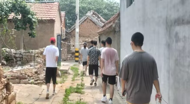 7月19日下午。“火炬传承·红色印记”实践团成员抵达博山区北崮山村开展“清洁家园”主题活动。