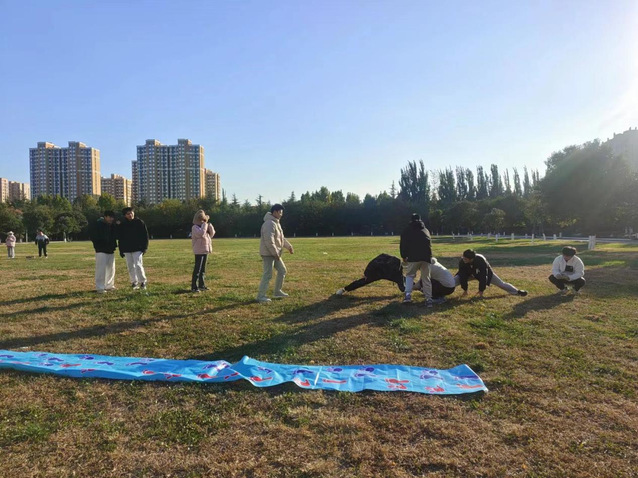 五人六足、奋勇向前、不倒森林、跳大绳等项目考察的是参赛队员们的团队协作和身体的协调性。比赛赛场上,队员们相互协助,配合默契,喊着统一的口号,现场的气氛十分活跃。