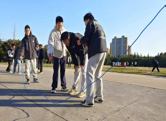 长腿连线是一项趣味性十足的项目,参赛队员们纷纷秀出一字马大长腿,为了团队的成绩,痛苦并快乐着。在一旁的同学们看的也是津津有味,笑声连绵不断。