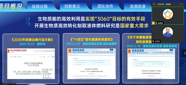 本次指导会采用“一对一”指导的模式,团队成员通过路演展示,从项目背景、实践过程、创新意义、发展前景、团队协作、未来展望等方面进行汇报,充分展现自身团队项目的创新性及意义。