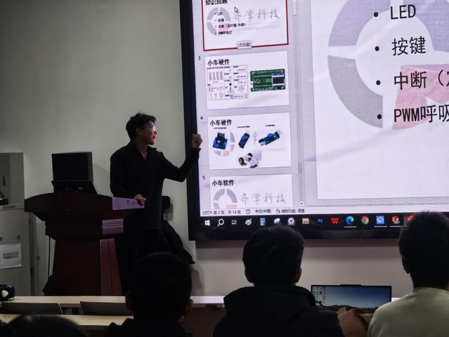 12月7日智能控制科学会在大红炉会议室进行了第七次培训,此次培训由韩延禄负责,主要讲解的小车硬件和软件两个方面。