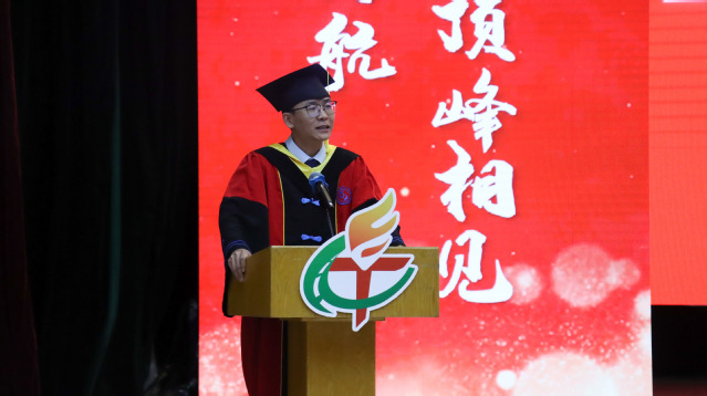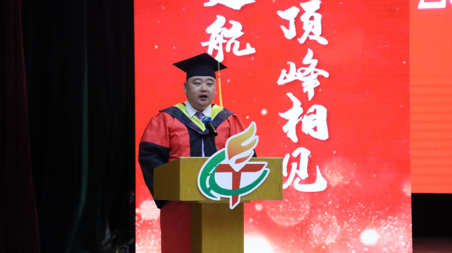 公司经理李波致辞。他向全体毕业生表示热烈的祝贺,深情回忆学子们四年间从军训、课堂、实验室到考研复习的难忘点滴,并高度赞扬了2025届毕业生的优异成绩。在同学们即将踏上人生崭新征程之际,他提出三点期许:一是要像“利剑出刃”般锐意进取,以“扬帆起航”的昂扬姿态勇敢迎接未来的挑战;二是要胸怀“天高海阔”的远大格局,在各自的人生道路上脚踏实地、稳步前行;三是要将毕业视为“学途始发”的新起点,在未来的征程中“再续芳华”,用奋斗书写人生新篇章。