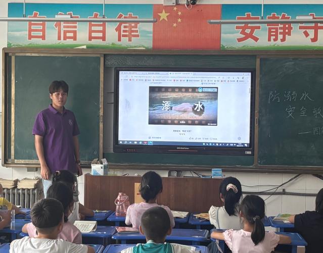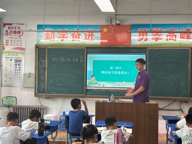 班会上,实践团成员为大家讲解了防溺水的安全知识,告诉同学们什么样的水域不能去游泳和玩耍,引导同学们去正规的游泳场馆。实践团成员们为小朋友们介绍了“六不一会”,即:不私自下水游泳;不擅自与他人结伴游泳;不在无家长或教师带领的情况下游泳;不到无安全设施、无救援人员的水域游泳;不到不熟悉的水域游泳;不盲目下水施救;学会基本的自护、自救方法。同时,实践团成员还结合真实案例,向同学们分享了多个溺水成功自救及科学施救的典型案例。通过实践团成员们对于防溺水知识的讲解以及对经典案例的介绍与分析,同学们对防溺水有了更深刻的理解和认识,为同学们的生命安全提供了更好保障。