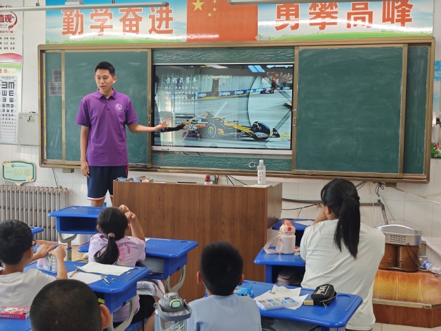 为发挥专业特长、普及赛车文化,7月24日,bevictor伟德爱之传承暑期社会实践团邀请了舜泰·至尚方程式赛车队的成员丁晨洋为明德小学的孩子们上了一堂别开生面的赛车知识课。