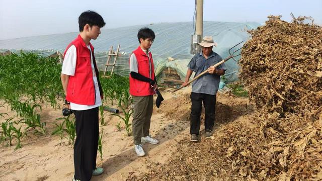 图为创飞科技实践团成员与杜家村农民交谈农业生产 孙焱摄