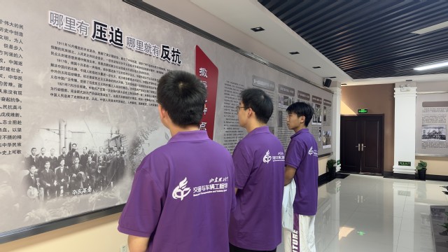 在纪念馆内,气氛瞬间变得安静又肃穆。实践团成员一字一句地阅读着墙上的英雄事迹,感受每一行文字背后滚烫的信仰。进入红色展馆内,一件件红色展物如同会说话的“时间碎片”,把队员们瞬间拉回硝烟四起的年代。每一件遗物都是一枚火种,让“信仰”二字从抽象变得滚烫,烧红了青年们的内心,也点燃了他们心底为未来拼搏的誓言。